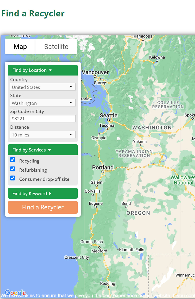 e-Stewards needed a way for individuals and businesses to find a certified e-Stewards recycler.